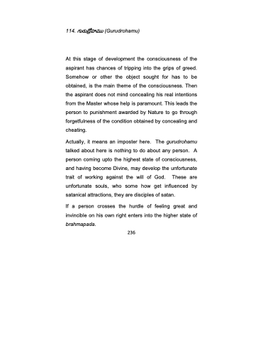 At this stage of development the consciousness of the aspirant has chances of tripping into the grips of greed. Somehow or other the object sought for has to be obtained, is the main theme of the consciousness. Then the aspirant does not mind concealing his real intentions from the Master whose help is paramount. This leads the person to punishment awarded by Nature to go through forgetfulness of the condition obtained by concealing and cheating.