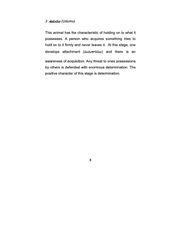 This animal has the characteristic of holding on to what it possesses. A person who acquires something tries to hold on to it firmly and never leaves it. At this stage, one develops attachment (మమకారము) and there is an