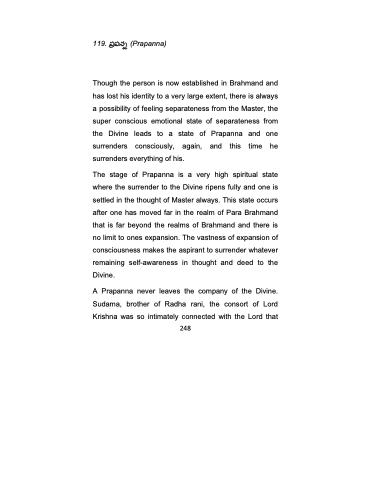 A Prapanna never leaves the company of the Divine. Sudama, brother of Radha rani, the consort of Lord Krishna was so intimately connected with the Lord that 248