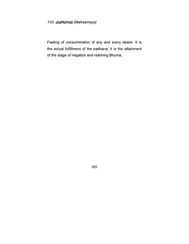133. మమాయ (Mahaamaya) Feeling of consummation of any and every desire. It is the actual fulfillment of the sadhana; It is the attainment of the stage of negation and reaching Bhuma. 265