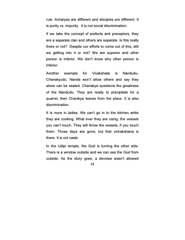rule. Acharyas are different and disciples are different. It is purity vs. impurity. It is not social discrimination.