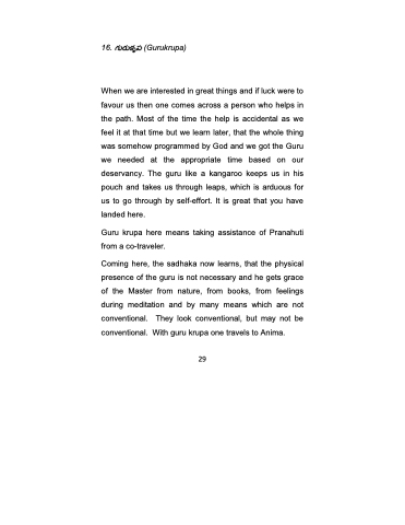 Coming here, the sadhaka now learns, that the physical presence of the guru is not necessary and he gets grace of the Master from nature, from books, from feelings during meditation and by many means which are not conventional. They look conventional, but may not be conventional. With guru krupa one travels to Anima.