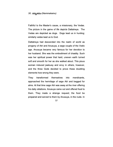 Faithful to the Master’s cause, a missionary, the Vedas. The picture in the game of life depicts Dattatreya. The Vedas are depicted as dogs. Dogs lead us in hunting; similarly vedas lead us to God.