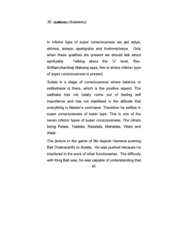 The picture in the game of life depicts Vamana pushing Bali Chakravarthi to Sutala. He was pushed because he interfered in the work of other functionaries. The difficulty with King Bali was, he was capable of understanding that 65