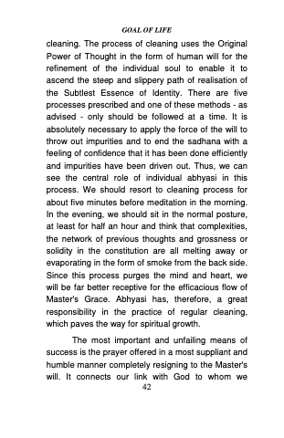ROLE OF ABHYASI\u000Asurrender ourselves with love and devotion. The reason why prayer should be offered with a heart full of love and devotion is that one should create within oneself a state of vacuity so that the flow of Divine Grace is diverted towards him. A man has Bipolar existence. While our root lies nearest to the Base, Ultimate, Bhuma or God - which is spiritual, we have the worldly existence at the other end. It is an extension from the Base. This connection between these two has been mostly obliterated and blocked by grossness and complexities. It is only through Prayer - as a part of our meditational practices - we will be able to seek Divine Master\u0027s support to clear the path to our Base and restore our linkage through His Grace. Then only our understanding that \u201CMan is made in the image of God\u201D will attain Divine fruition. If somehow, the individual mind gets moulded towards the Cosmic mind, it begins to appear in its true colours. The individual mind is a part and similar to the Godly mind - the Kshobha, which set into motion the forces of Nature to bring into existence the creation. If somehow we turn its downward trend towards the base, it will become quite calm and peaceful. It is only the help of the Dynamic Personality - the Special Personality - that can turn it towards the Base. The aim of our prayer is to seek His intervention - in the form of Master\u0027s support. When man creates in himself a strong craving for the\u000A43\u000A