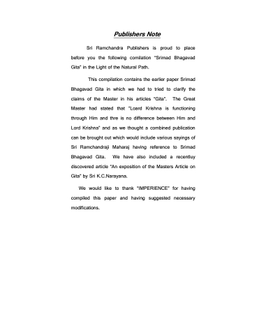 Sri Ramchandra Publishers is proud to place before you the following comilation “Srimad Bhagavad Gita” in the Light of the Natural Path.