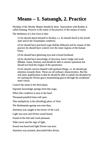 Means – 1. Satsangh, 2. Practice