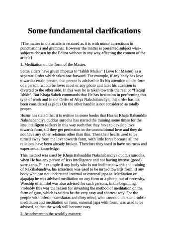 Some elders have given impetus to “Ishkh Majaji” {Love for Master) as a separate Order which takes one forward. For example, if any body has love towards certain person, that person is advised to fix his attention on the form of a person, whom he loves most or any photo and later his attention is diverted to the other side. In this way he is taken towards the real or “Haqiqi Ishkh”. But Khaja Saheb commands that He has hesitation in performing this type of work and in the Order of Aliya Nakshabandiya, this order has not been considered as pious On the other hand it is not considered as totally proper.
