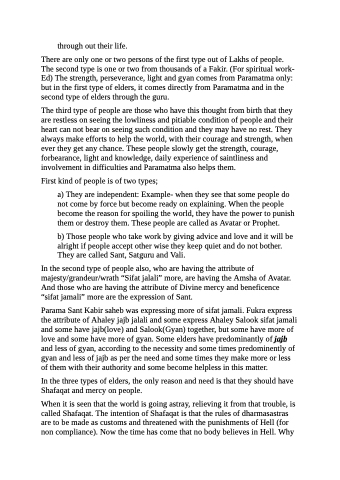 There are only one or two persons of the first type out of Lakhs of people. The second type is one or two from thousands of a Fakir. (For spiritual work- Ed) The strength, perseverance, light and gyan comes from Paramatma only: but in the first type of elders, it comes directly from Paramatma and in the second type of elders through the guru.