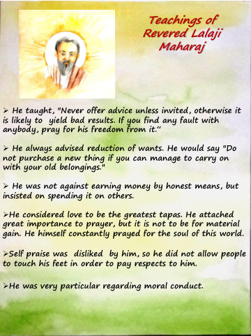 He taught, "Never offer advice unless invited, otherwise it is likely to yield bad results. If you find any fault with anybody, pray for his freedom from it.“