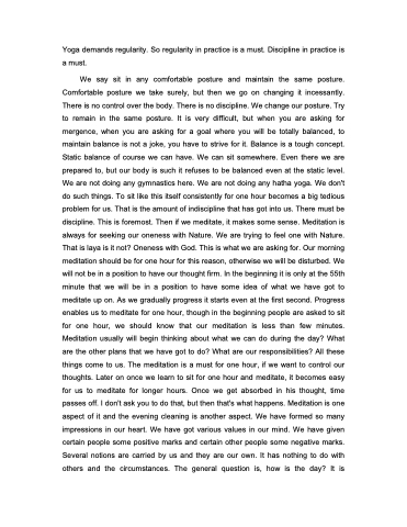 Yoga demands regularity. So regularity in practice is a must. Discipline in practice is a must.