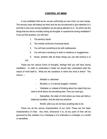 CONTROL OF MIND