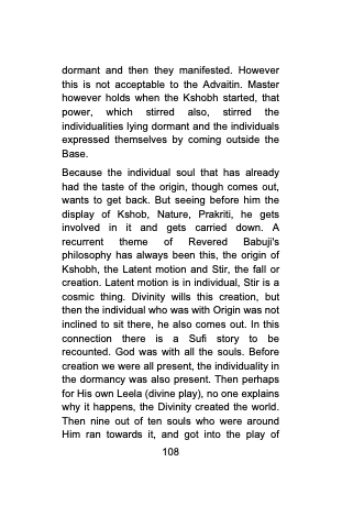 dormant and then they manifested. However this is not acceptable to the Advaitin. Master however holds when the Kshobh started, that power, which stirred also, stirred the individualities lying dormant and the individuals expressed themselves by coming outside the Base.
