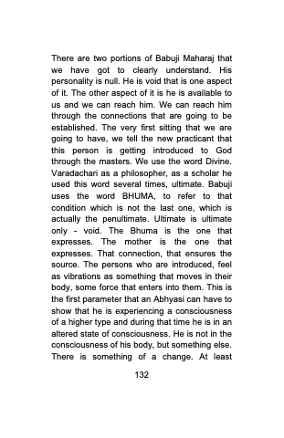 There are two portions of Babuji Maharaj that we have got to clearly understand. His personality is null. He is void that is one aspect of it. The other aspect of it is he is available to us and we can reach him. We can reach him through the connections that are going to be established. The very first sitting that we are going to have, we tell the new practicant that this person is getting introduced to God through the masters. We use the word Divine. Varadachari as a philosopher, as a scholar he used this word several times, ultimate. Babuji uses the word BHUMA, to refer to that condition which is not the last one, which is actually the penultimate. Ultimate is ultimate only - void. The Bhuma is the one that expresses. The mother is the one that expresses. That connection, that ensures the source. The persons who are introduced, feel as vibrations as something that moves in their body, some force that enters into them. This is the first parameter that an Abhyasi can have to show that he is experiencing a consciousness of a higher type and during that time he is in an altered state of consciousness. He is not in the consciousness of his body, but something else. There is something of a change. At least