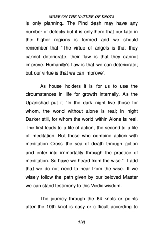 is only planning. The Pind desh may have any number of defects but it is only here that our fate in the higher regions is formed and we should remember that “The virtue of angels is that they cannot deteriorate; their flaw is that they cannot improve. Humanity's flaw is that we can deteriorate; but our virtue is that we can improve”.