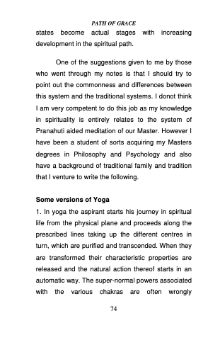 One of the suggestions given to me by those who went through my notes is that I should try to point out the commonness and differences between this system and the traditional systems. I donot think I am very competent to do this job as my knowledge in spirituality is entirely relates to the system of Pranahuti aided meditation of our Master. However I have been a student of sorts acquiring my Masters degrees in Philosophy and Psychology and also have a background of traditional family and tradition that I venture to write the following.