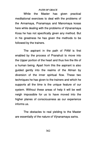 The aspirant in the path of PAM is first enabled by the process of Pranahuti to move into the Upper portion of the heart and thus live the life of a human being. Apart from this the aspirant is also guided gently into the realms of the Atman by diversion of the inner spiritual flow. These two techniques he has given to the trainers and which he supports all the time is the unique feature of our system. Without these areas of help it will be well neigh impossible for us to have moved into the higher planes of consciousness as our experience informs us.