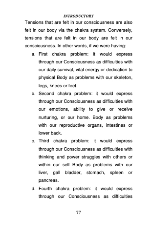 c. Third chakra problem: it would express through our Consciousness as difficulties with thinking and power struggles with others or within our self Body as problems with our liver, gall bladder, stomach, spleen or pancreas.
