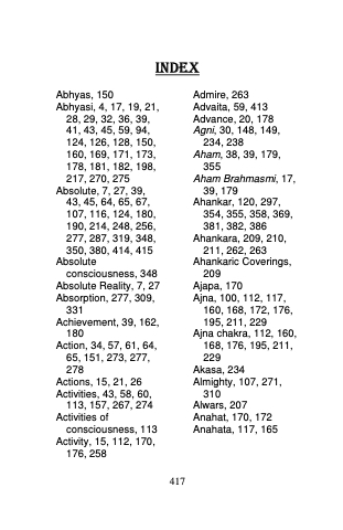 Admire, 263 Advaita, 59, 413 Advance, 20, 178 Agni, 30, 148, 149,