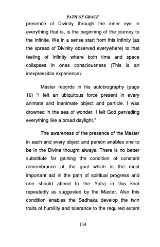 The awareness of the presence of the Master in each and every object and person enables one to be in the Divine thought always. There is no better substitute for gaining the condition of constant remembrance of the goal which is the most important aid in the path of spiritual progress and one should attend to the Yatra in this knot repeatedly as suggested by the Master. Also this condition enables the Sadhaka develop the twin traits of humility and tolerance to the required extent