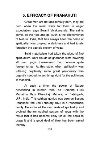At such a time, the power of Nature descended in human form, as Samarth Guru Mahatma Ram Chandraji Maharaj of Fatehgarh, U.P., India. This spiritual genius was born on Basant Panchami, the 2nd February 1873 in a respectable family. He explored the vast fields of spirituality and evolved the remodelled system of yoga with the result that it has become easy for all the souls to grasp it and a good deal of time has been saved thereby.