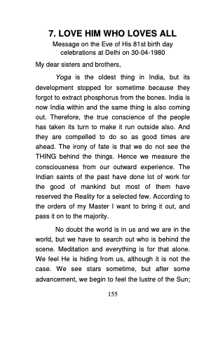 Message on the Eve of His 81st birth day celebrations at Delhi on 30-04-1980