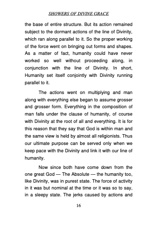 Now since both have come down from the one great God — The Absolute — the humanity too, like Divinity, was in purest state. The force of activity in it was but nominal at the time or it was so to say, in a sleepy state. The jerks caused by actions and