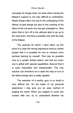 necessity for bhoga does not arise when having the Master's support is not very difficult to understand. Really bhoga refers not only to the undergoing of the effects of past doings but also to the undoing of the effect of the net-work one has got entangled in. Only when that is torn off is the abhyasi able to go up to the next point, and that is possible only with the help of the Master.