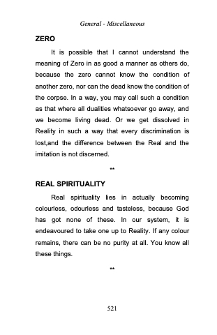 It is possible that I cannot understand the meaning of Zero in as good a manner as others do, because the zero cannot know the condition of another zero, nor can the dead know the condition of the corpse. In a way, you may call such a condition as that where all dualities whatsoever go away, and we become living dead. Or we get dissolved in Reality in such a way that every discrimination is lost,and the difference between the Real and the imitation is not discerned.
