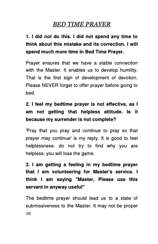 The bedtime prayer should lead us to a state of submissiveness to the Master. It may not be proper 10