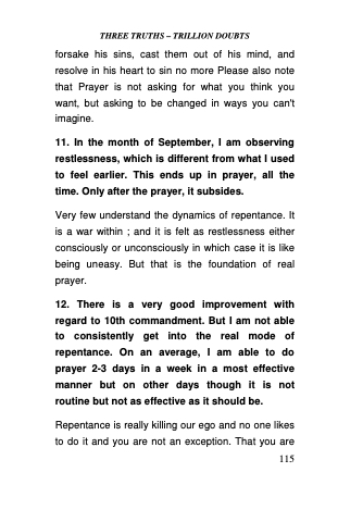 11. In the month of September, I am observing restlessness, which is different from what I used to feel earlier. This ends up in prayer, all the time. Only after the prayer, it subsides.