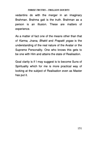 vedantins do with the merger in an imaginary Brahman. Brahma gati is the truth. Brahman as a person is an illusion. These are matters of experience.