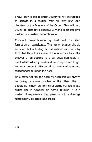 I have only to suggest that you try to not only attend to abhyas in a routine way but with love and devotion to the Masters of the Order. This will help you to be connected continuously and is an effective method of constant remembrance.