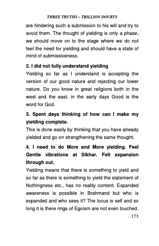 are hindering such a submission to his will and try to avoid them. The thought of yielding is only a phase, we should move on to the stage where we do not feel the need for yielding and should have a state of mind of submissiveness.