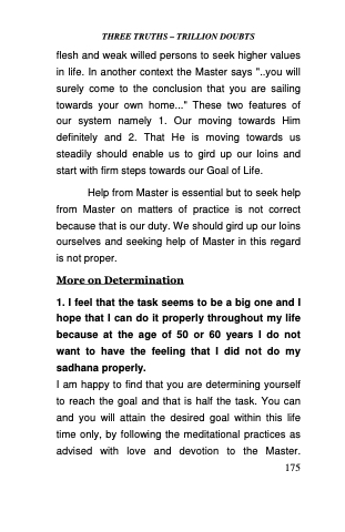 flesh and weak willed persons to seek higher values in life. In another context the Master says "..you will surely come to the conclusion that you are sailing towards your own home..." These two features of our system namely 1. Our moving towards Him definitely and 2. That He is moving towards us steadily should enable us to gird up our loins and start with firm steps towards our Goal of Life.