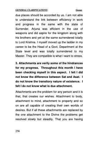 due places should be accorded by us. I am not able to understand the link between efficiency in work and progress in the same with the state of Surrender. Arjuna was efficient in the use of weapons and did aspire for the kingdom along with his brothers and yet at the same surrendered totally to Lord Krishna. I myself moved up the ladder in my career to be the Head of a Govt. Department at the State level and was totally surrendered to my Master. They are compatible is what I want to stress.
