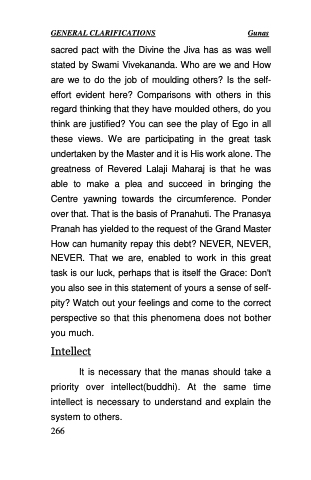 sacred pact with the Divine the Jiva has as was well stated by Swami Vivekananda. Who are we and How are we to do the job of moulding others? Is the self- effort evident here? Comparisons with others in this regard thinking that they have moulded others, do you think are justified? You can see the play of Ego in all these views. We are participating in the great task undertaken by the Master and it is His work alone. The greatness of Revered Lalaji Maharaj is that he was able to make a plea and succeed in bringing the Centre yawning towards the circumference. Ponder over that. That is the basis of Pranahuti. The Pranasya Pranah has yielded to the request of the Grand Master How can humanity repay this debt? NEVER, NEVER, NEVER. That we are, enabled to work in this great task is our luck, perhaps that is itself the Grace: Don't you also see in this statement of yours a sense of self- pity? Watch out your feelings and come to the correct perspective so that this phenomena does not bother you much.