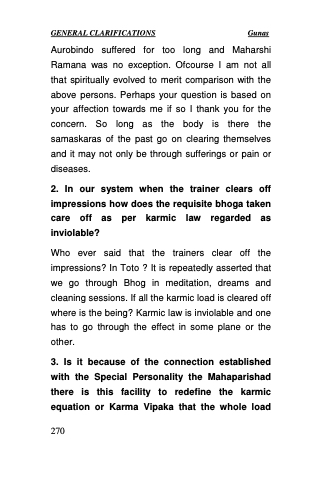 Aurobindo suffered for too long and Maharshi Ramana was no exception. Ofcourse I am not all that spiritually evolved to merit comparison with the above persons. Perhaps your question is based on your affection towards me if so I thank you for the concern. So long as the body is there the samaskaras of the past go on clearing themselves and it may not only be through sufferings or pain or diseases.