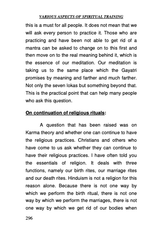 VARIOUS ASPECTS OF SPIRITUAL TRAINING