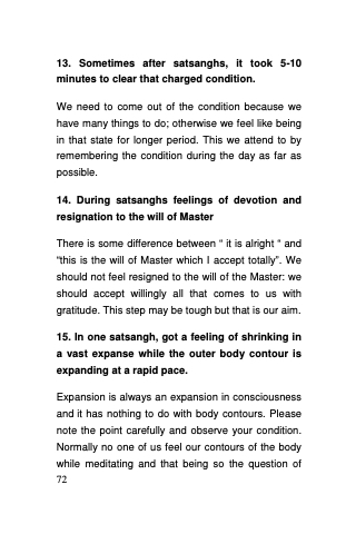 14. During satsanghs feelings of devotion and resignation to the will of Master