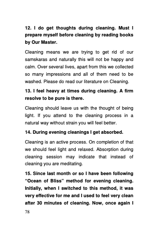 12. I do get thoughts during cleaning. Must I prepare myself before cleaning by reading books by Our Master.