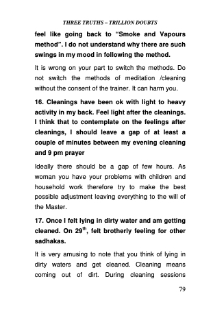 17. Once I felt lying in dirty water and am getting cleaned. On 29th, felt brotherly feeling for other sadhakas.