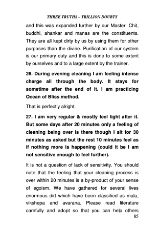 and this was expanded further by our Master. Chit, buddhi, ahankar and manas are the constituents. They are all kept dirty by us by using them for other purposes than the divine. Purification of our system is our primary duty and this is done to some extent by ourselves and to a large extent by the trainer.
