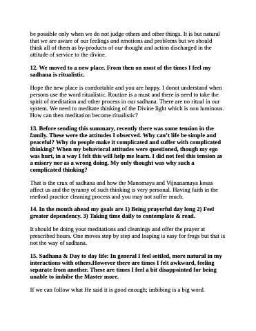 12. We moved to a new place. From then on most of the times I feel my sadhana is ritualistic.