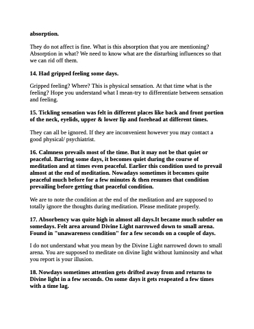 18. Nowdays sometimes attention gets drifted away from and returns to Divine light in a few seconds. On some days it gets reapeated a few times with a time lag.