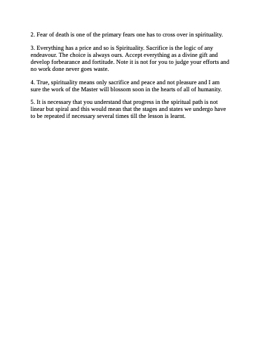 5. It is necessary that you understand that progress in the spiritual path is not linear but spiral and this would mean that the stages and states we undergo have to be repeated if necessary several times till the lesson is learnt.