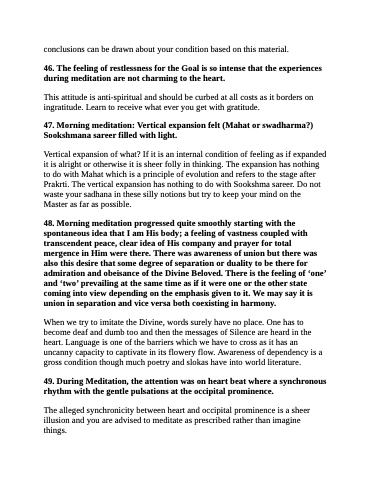 46. The feeling of restlessness for the Goal is so intense that the experiences during meditation are not charming to the heart.