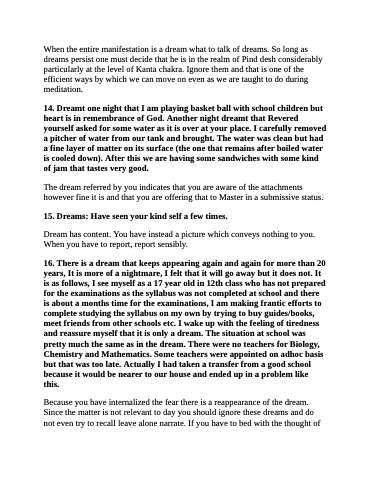 16. There is a dream that keeps appearing again and again for more than 20 years, It is more of a nightmare, I felt that it will go away but it does not. It is as follows, I see myself as a 17 year old in 12th class who has not prepared for the examinations as the syllabus was not completed at school and there is about a months time for the examinations, I am making frantic efforts to complete studying the syllabus on my own by trying to buy guides/books, meet friends from other schools etc. I wake up with the feeling of tiredness and reassure myself that it is only a dream. The situation at school was pretty much the same as in the dream. There were no teachers for Biology, Chemistry and Mathematics. Some teachers were appointed on adhoc basis but that was too late. Actually I had taken a transfer from a good school because it would be nearer to our house and ended up in a problem like this.