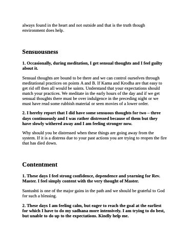 2. I hereby report that I did have some sensuous thoughts for two – three days continuously and I was rather distressed because of them but they have slowly withered away and I am feeling stronger now.