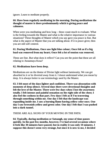 61. During Meditations, Once saw light blue colour; Once felt as if a big load was removed from my heart; Once felt a lot of tension was removed.